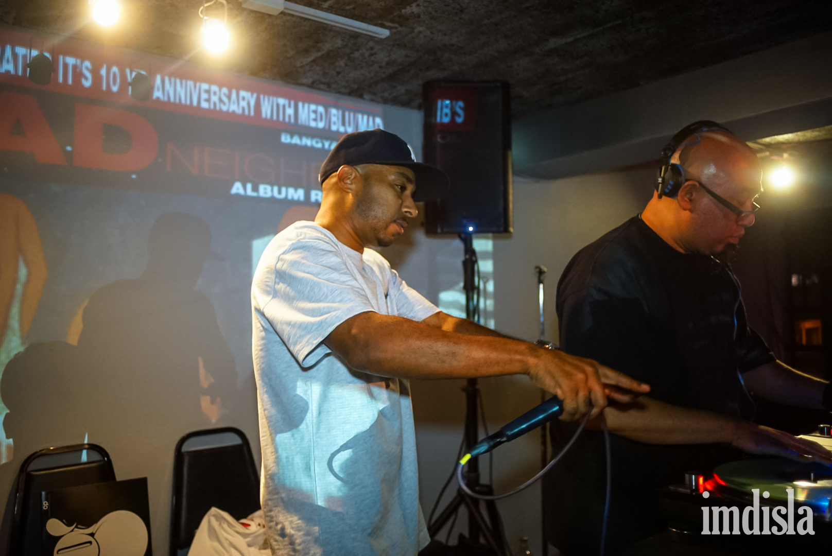 As the night continued without Blu and Madlib, who unfortunately could not be at the show. Some guest appearances hit the stage… DJ Babu, Percee P, Dibia$e, 14K, DJ Babu, Surplus, Cazal Organism, Georgia Anne Muldrow & Dudley Perkins. Above is the video of their performances. Just to sum it up real quick. The legendary Percee P did his thing on the mic. Georgia Anne Muldrow & Dudley Perkins performed flowers, and Perkins also went in over some Madlib track. Producers need to take note as 14k and Dibia$e go through their catalog full of heaters. I know people in the crowd left that night with their necks hurting with all the head nodding bangers they played. To close out the night MED spit a few bars with DJ Rhettmatic of the Beat Junkies on the 1200’s.
